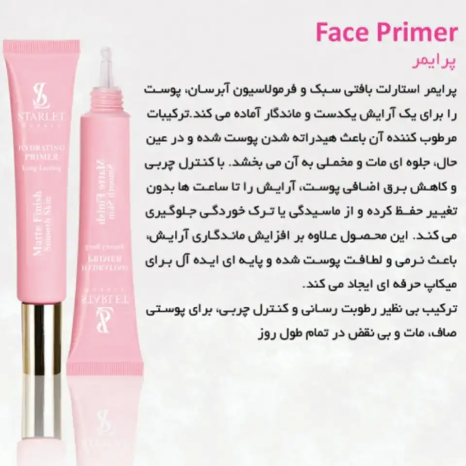 ژل پرایمر استارلت، محصولی شگفتانگیز از برند ایرانی استارلت، با فرمولاسیون سبک و آبرسان، پوست شما را برای یک آرایش یکدست و ماندگار آماده میکند.